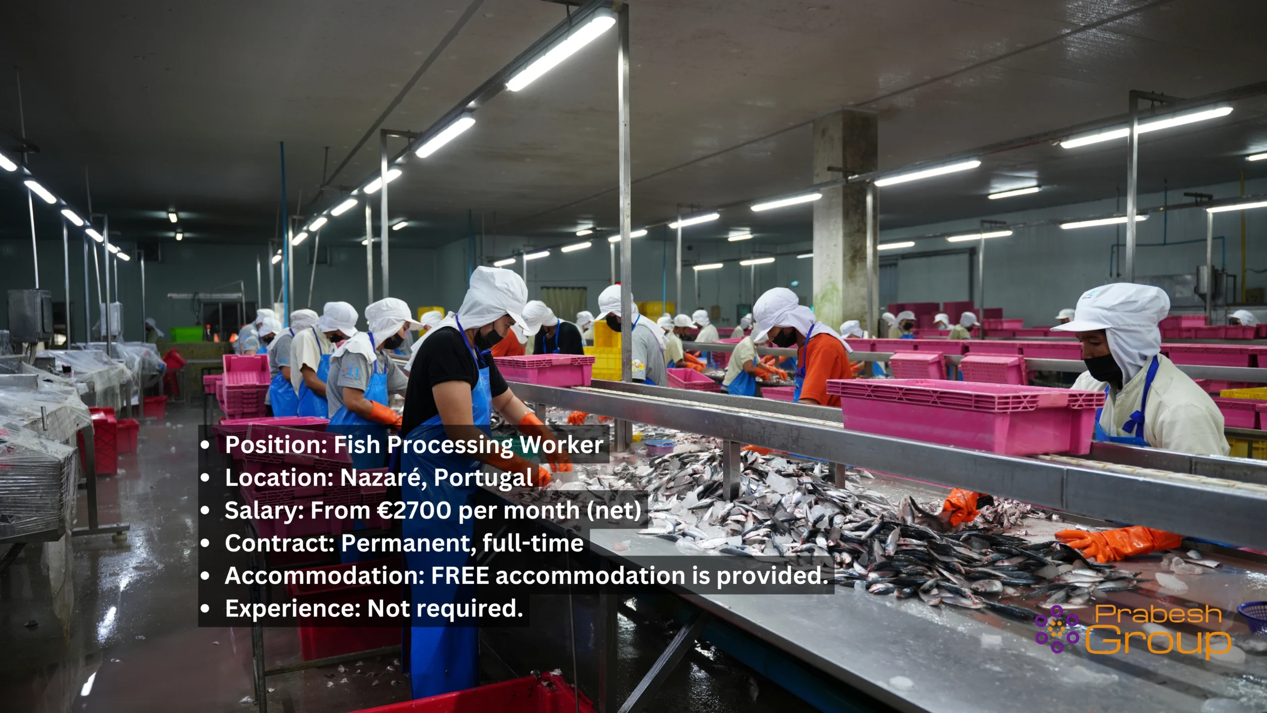 Prabesh Group is currently seeking motivated and hardworking individuals for full-time Fish Processing Worker positions in the beautiful coastal town of Nazaré, Portugal.